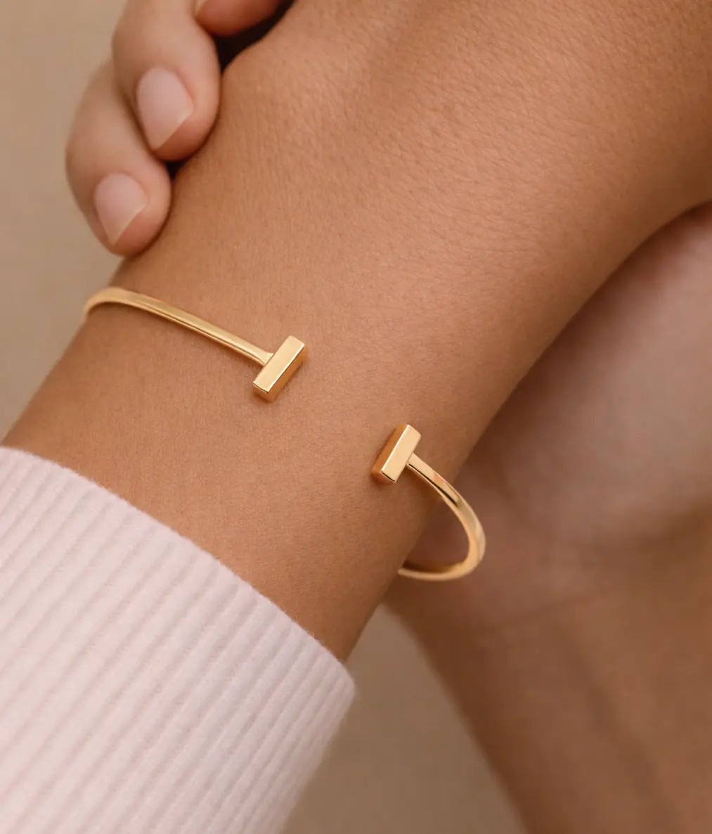Este brazalete ajustable para mujer destaca por su diseño minimalista y elegante, ideal para quienes buscan una joya atemporal que combine con cualquier estilo. Fabricado en metal de alta calidad con acabado dorado, oro rosa o plateado, su forma abierta permite un ajuste cómodo y seguro en diferentes tamaños de muñeca.