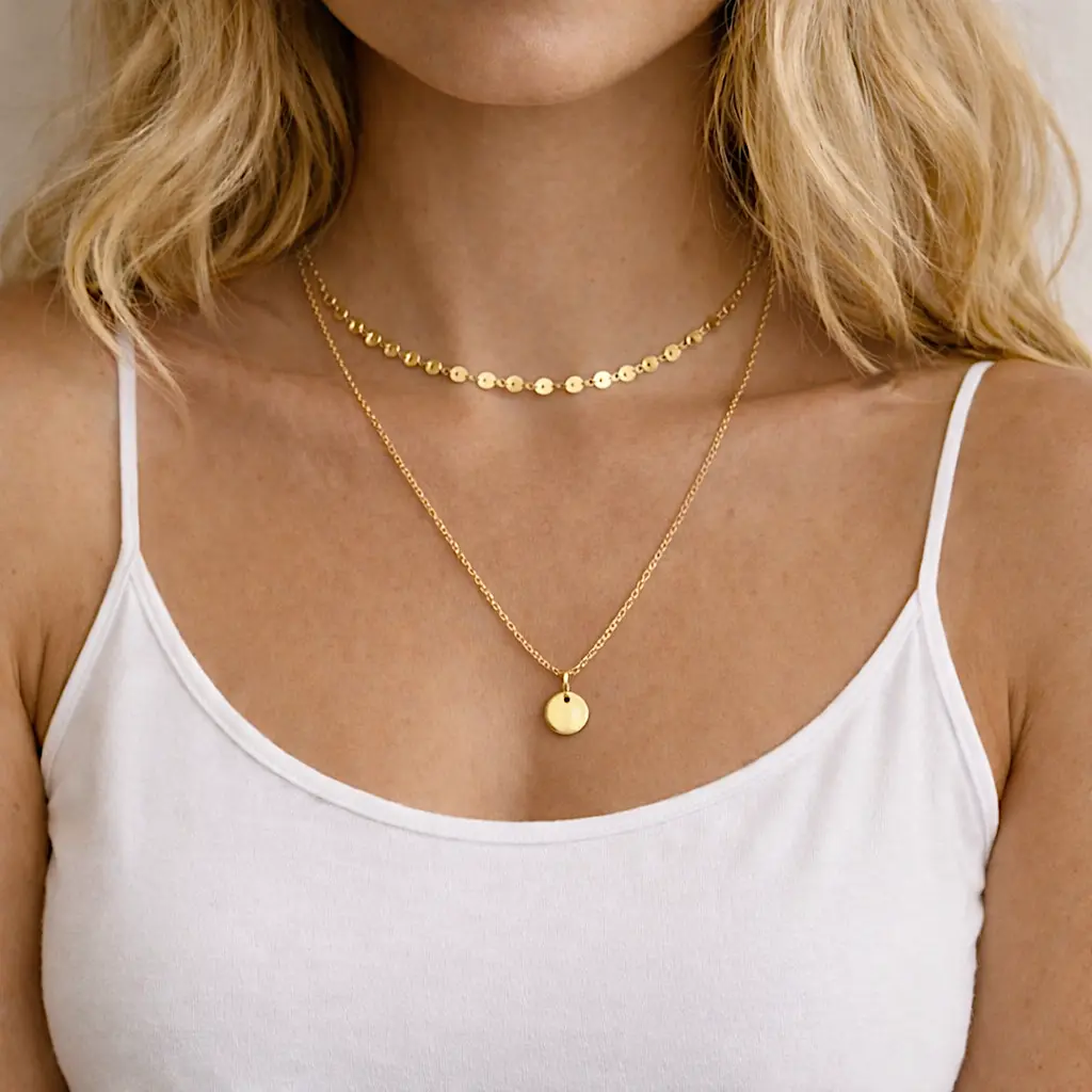 Fabricado en metal con acabado dorado o plateado, ofrece un brillo suave y una buena resistencia al uso habitual. Gracias a su cadena ajustable, puede adaptarse a distintas alturas del cuello y llevarse tanto solo como combinado con otros collares finos.