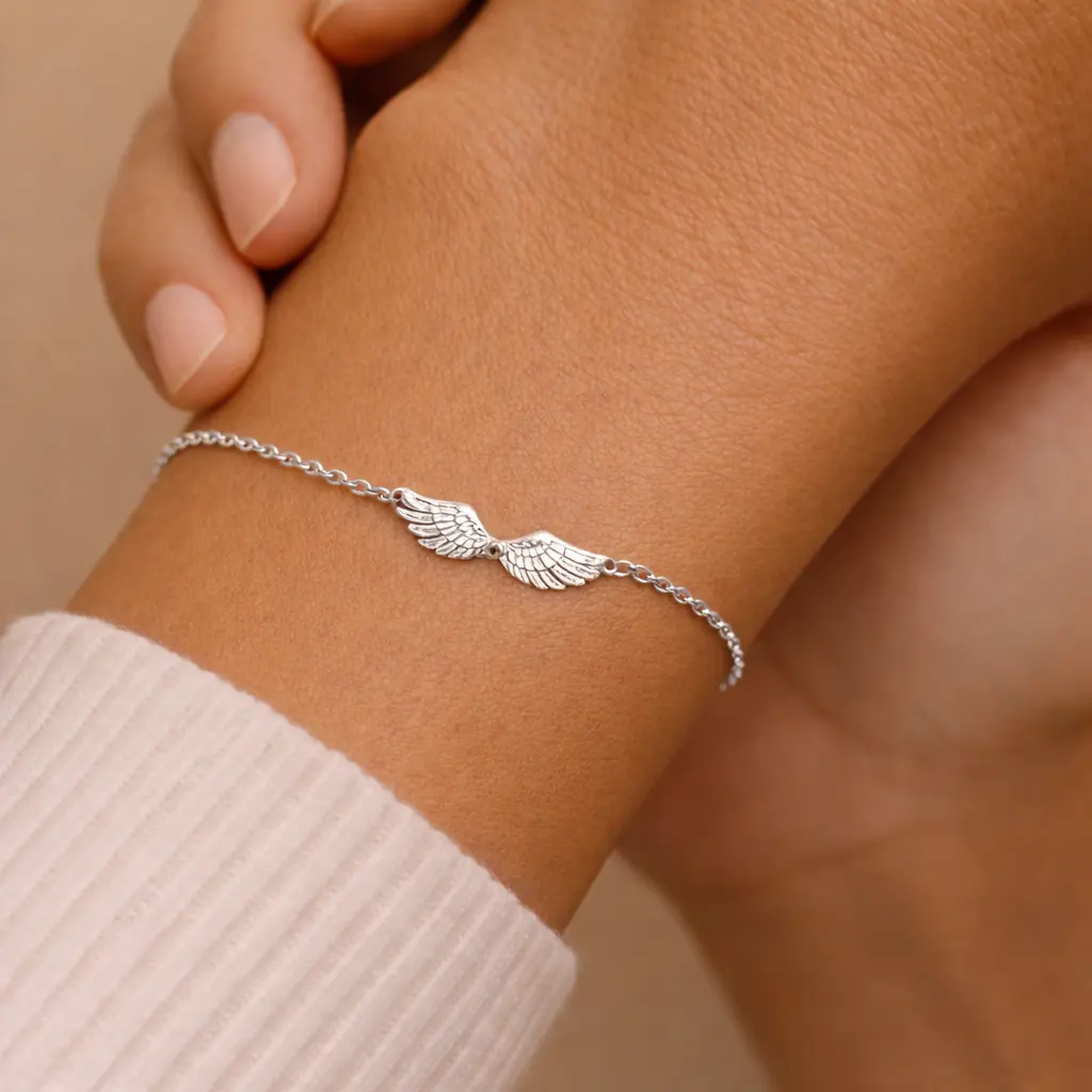 La pulsera de alas de ángel para mujer es una joya delicada y elegante que simboliza protección, amor y guía espiritual. Su diseño incorpora un fino adorno en forma de alas de ángel, ideal para quienes buscan un accesorio con significado y estilo atemporal.