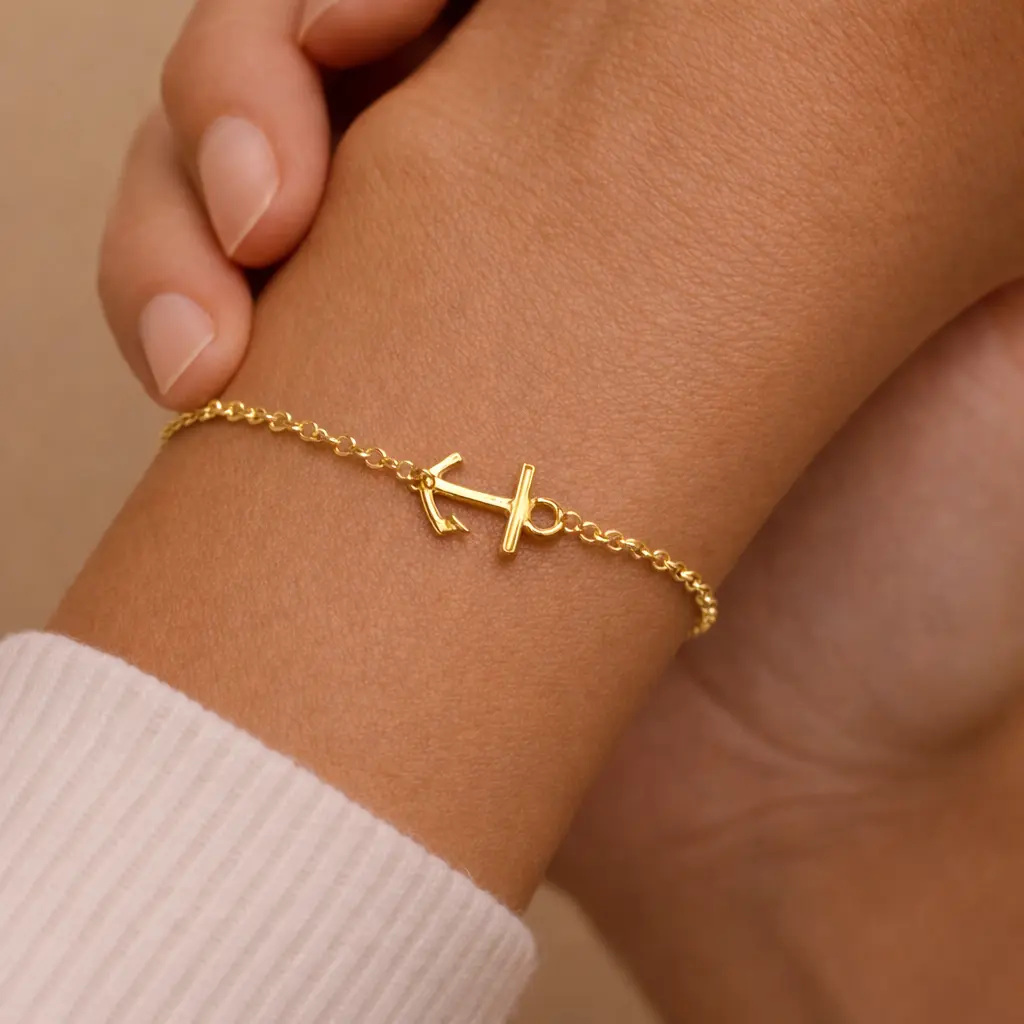 Esta pulsera ancla para mujer es un accesorio elegante con un fuerte significado simbólico, asociado a la estabilidad, la fuerza y la esperanza. Su diseño delicado incorpora un adorno en forma de ancla, aportando un estilo minimalista y atemporal.