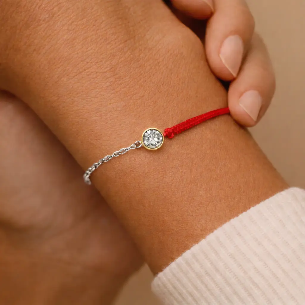 Esta pulsera cordon rojo para mujer es un amuleto cargado de significado, tradicionalmente asociado a la protección, la suerte y los vínculos especiales. Su diseño delicado combina un hilo cordon rojo resistente con una pieza central de acero inoxidable en acabado dorado o plateado, adornada con un cristal blanco brillante que aporta luz y elegancia.