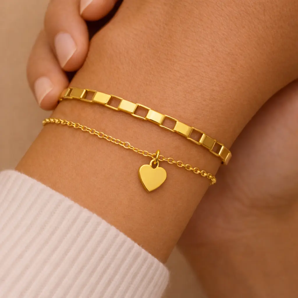El efecto de doble pulsera aporta profundidad y elegancia a la muñeca, convirtiéndola en una auténtica pulsera capas corazón fácil de llevar tanto a diario como en ocasiones especiales. El pequeño corazón aporta un mensaje sutil de cariño y cercanía, lo que la convierte también en una pulsera ideal para regalar a alguien especial.